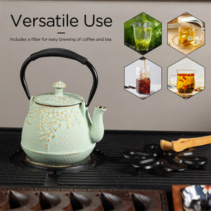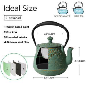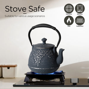 Cast Iron Teapot-This cast iron teapot is carefully crafted using the traditional cast iron process. Its thick material can evenly heat the kettle, but also can effectively save heat, so that the water in the pot can maintain a high temperature for a long time, helping to fully release the aroma and taste of tea. In the process of boiling water, the cast iron teapot will release a trace amount of iron ions, which can improve the water quality , making the water more soft and sweet.