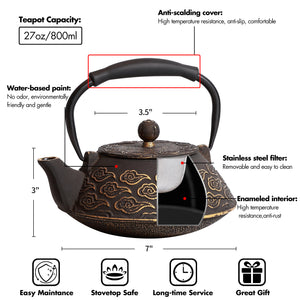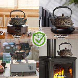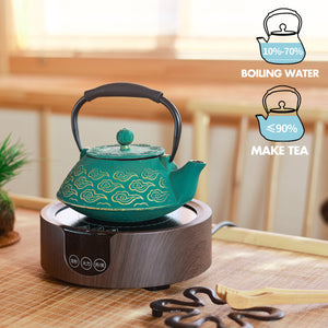 Cast Iron Material: Crafted from high-quality Australian iron ore, each teapot is hand-finished to create its unique surface texture. The specially selected premium Australian iron ensures better heat absorption, faster heating, and superior heat retention. This exquisite cast iron teapot blends traditional craftsmanship with modern aesthetics.