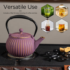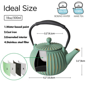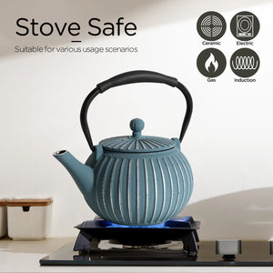 Cast Iron Teapot-This cast iron teapot is carefully crafted using the traditional cast iron process. Its thick material can evenly heat the kettle, but also can effectively save heat, so that the water in the pot can maintain a high temperature for a long time, helping to fully release the aroma and taste of tea. In the process of boiling water, the cast iron teapot will release a trace amount of iron ions, which can improve the water quality , making the water more soft and sweet.