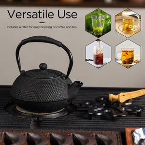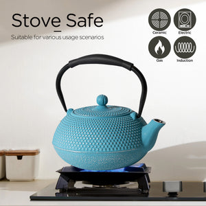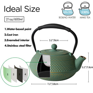 Cast Iron Teapot-This cast iron teapot is carefully crafted using the traditional cast iron process. Its thick material can evenly heat the kettle, but also can effectively save heat, so that the water in the pot can maintain a high temperature for a long time, helping to fully release the aroma and taste of tea. In the process of boiling water, the cast iron teapot will release a trace amount of iron ions, which can improve the water quality , making the water more soft and sweet.