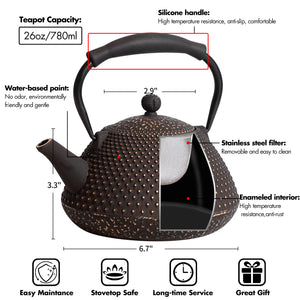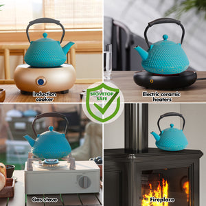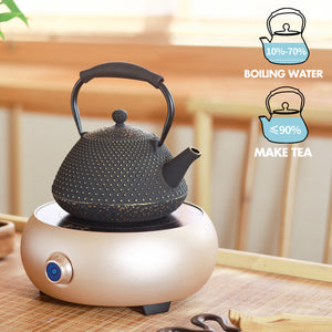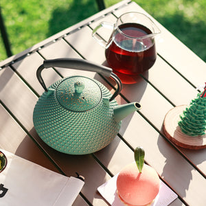Cast Iron Material: Crafted from high-quality Australian iron ore, each teapot is hand-finished to create its unique surface texture. The specially selected premium Australian iron ensures better heat absorption, faster heating, and superior heat retention. This exquisite cast iron teapot blends traditional craftsmanship with modern aesthetics.